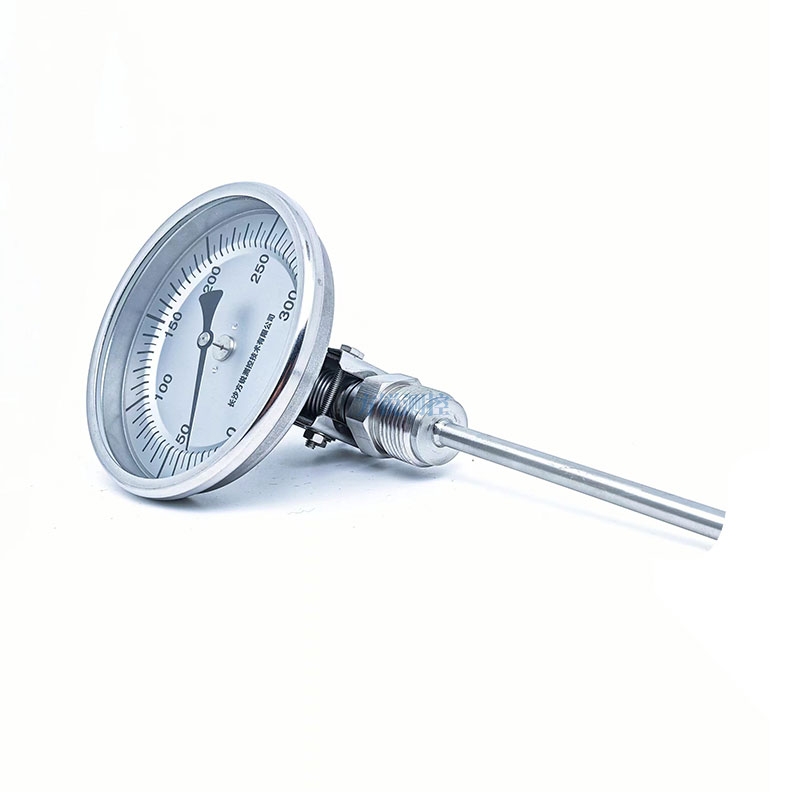 双金属温度计是一种适用于测量中低温的现场检测仪表,可用来直接测量气体、液体和物质的温度。与玻璃温度计比较,具有无汞害,读数清晰,坚固耐用等优点。我公司生产多种用途的双金属温度计,规格品种齐全,质量稳定可靠,可广泛应用于工业、农业、国防及科研等领域的各个部门。